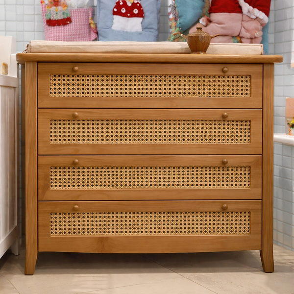 Produzida com materiais de alta qualidade, a Luna combina resistência e sofisticação. Suas quatro gavetas amplas contam corrediças telescópicas, que garante suavidade e silêncio no uso — ideal para a rotina com o bebê. Um toque de tecnologia e conforto no seu dia a dia.