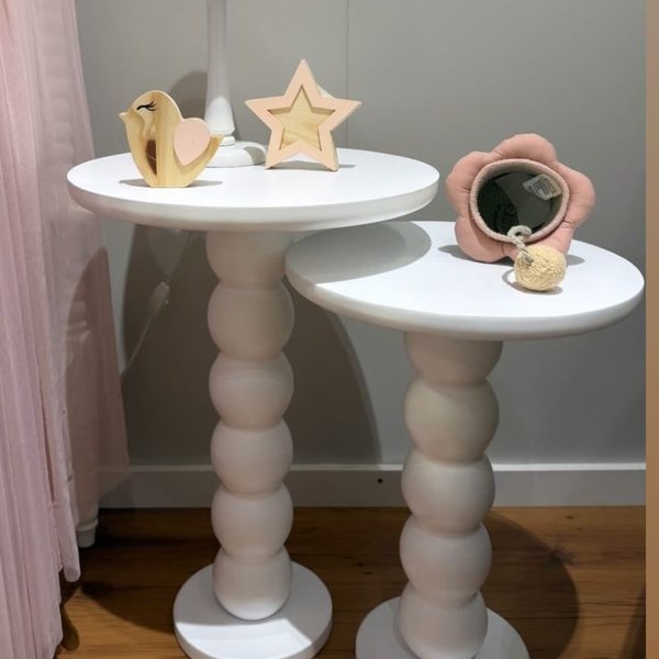 A Mesa Dot se destaca pelo seu visual lúdico e elegante. Seu pé escultórico, formado por volumes arredondados em sequência, traz um toque moderno e sofisticado ao ambiente. Ideal para compor espaços afetivos como o quarto do bebê, salas de estar ou cantinhos de leitura com personalidade e delicadeza.