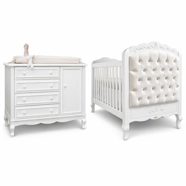 O Linha Versailles une sofisticação e delicadeza, com detalhes clássicos que transformam o ambiente em um verdadeiro refúgio para o bebê.