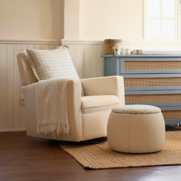 Com linhas suaves e elegantes, a Poltrona Serena é a escolha ideal para compor o quarto do bebê com charme e leveza. Seu design contemporâneo combina facilmente com diversos estilos de decoração, trazendo um toque acolhedor ao ambiente. Além disso, a linha de tecido em xadrez combina com o pufe Baú e o Berço Luna Soft.