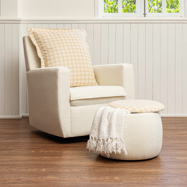 Com linhas suaves e elegantes, a Poltrona Serena é a escolha ideal para compor o quarto do bebê com charme e leveza. Seu design contemporâneo combina facilmente com diversos estilos de decoração, trazendo um toque acolhedor ao ambiente. Além disso, a linha de tecido em xadrez combina com o pufe Baú e o Berço Luna Soft.