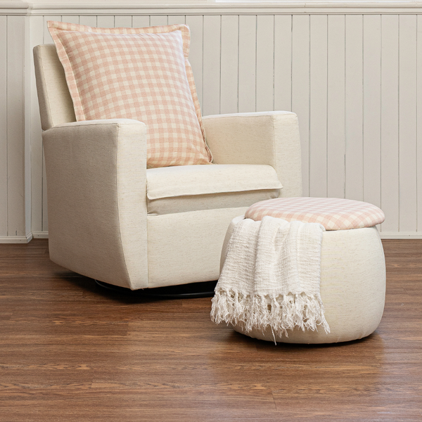 Com linhas suaves e elegantes, a Poltrona Serena é a escolha ideal para compor o quarto do bebê com charme e leveza. Seu design contemporâneo combina facilmente com diversos estilos de decoração, trazendo um toque acolhedor ao ambiente. Além disso, a linha de tecido em xadrez combina com o pufe Baú e o Berço Luna Soft.