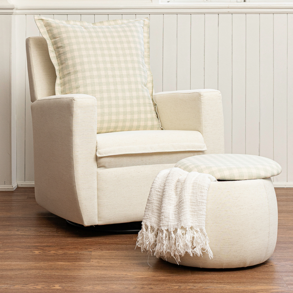 Com linhas suaves e elegantes, a Poltrona Serena é a escolha ideal para compor o quarto do bebê com charme e leveza. Seu design contemporâneo combina facilmente com diversos estilos de decoração, trazendo um toque acolhedor ao ambiente. Além disso, a linha de tecido em xadrez combina com o pufe Baú e o Berço Luna Soft.