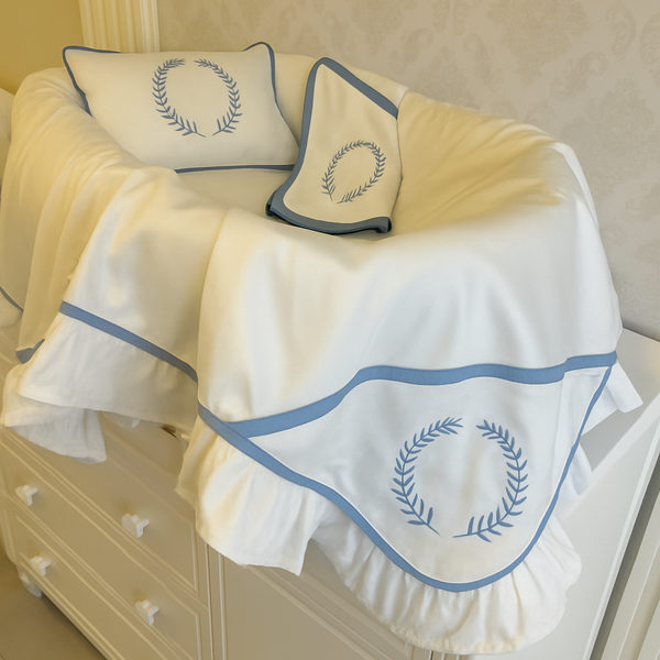 Em 4 opção de cores para bordado e debrum, este kit contempla um bordado com a inicial do seu bebê! Informe-nos a inicial ao efetuar a sua compra!