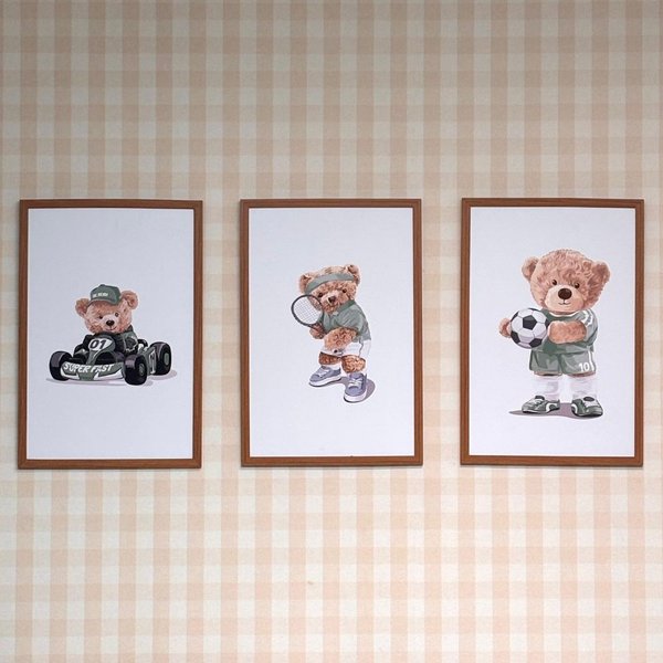 Quadros Decorativos com desenhos de ursos teddy esportistas da coleção Teddy Bear Sports. Nossos quadros são cuidadosamente elaborados para dar um toque de magia aos espaços dos pequenos. Com cores suaves e designs encantadores, nossos quadros são a escolha perfeita para adicionar um toque de magia à decoração do quarto do seu bebê. Cada quadro é uma obra de arte, uma produção exclusiva da Sonhos de Ninar feita com amor e com materiais de alta qualidade. Eles são ideais para criar um ambiente aconchegante e inspirador.