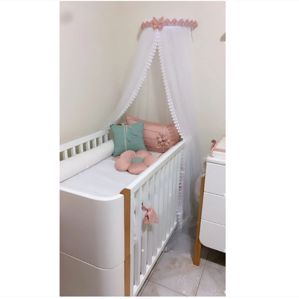 Este mosquiteiro em formato meia lua é confeccionado nos mais altos padrões de acabamento e segurança.