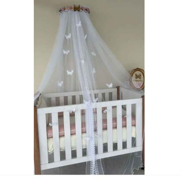 Medida: 2,30 na altura x 6,00m de largura. Veda o berço por completo. Fechado na parte de cima da meia lua.