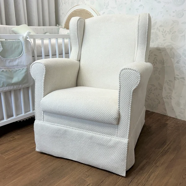 A Poltrona de Amamentação Eternity da Abstratto combina estilo clássico e conforto excepcional enquanto o design com encosto capitonê oferece um toque elegante.