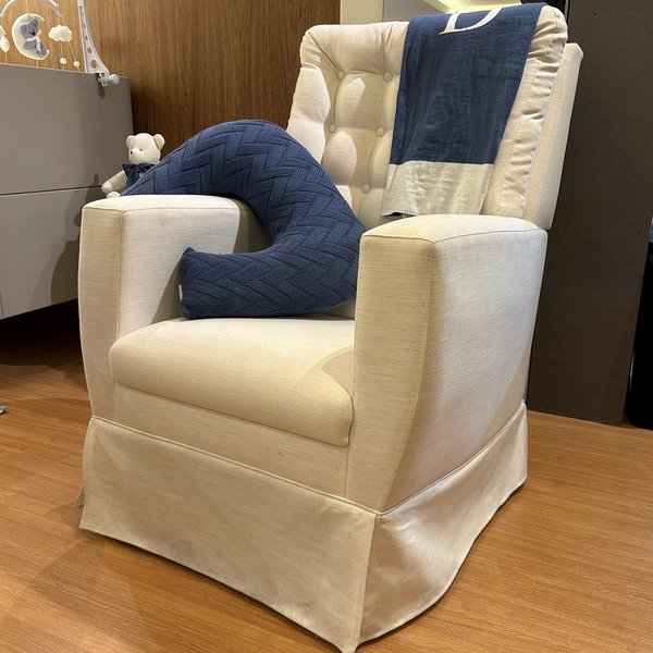 A Poltrona de Amamentação Eternity da Abstratto combina estilo clássico e conforto excepcional enquanto o design com encosto capitonê oferece um toque elegante.