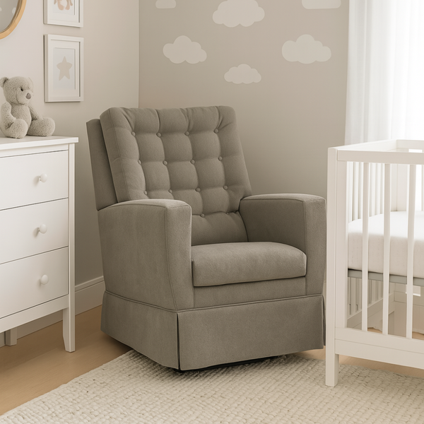 A Poltrona de Amamentação Eternity da Abstratto combina estilo clássico e conforto excepcional enquanto o design com encosto capitonê oferece um toque elegante.