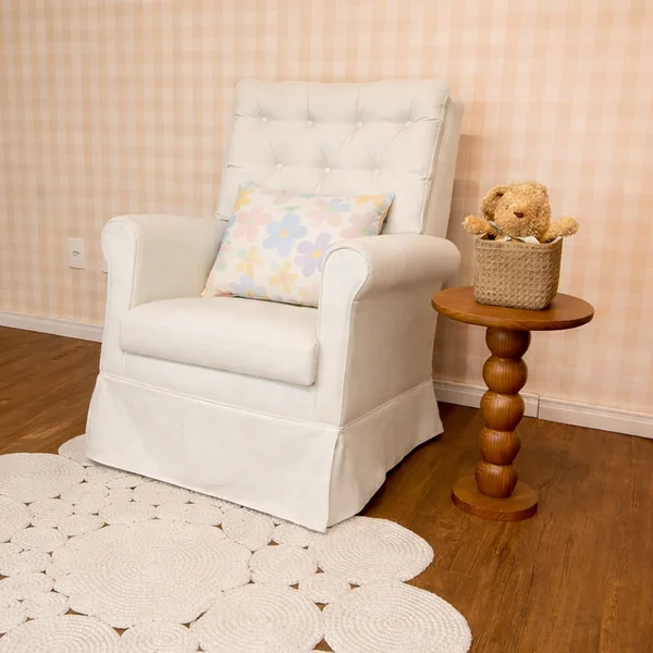 A Poltrona de Amamentação Nuvem combina estilo clássico e conforto excepcional enquanto o design com encosto capitonê oferece um toque elegante.
