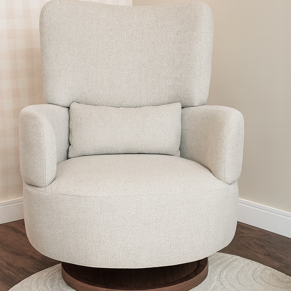 A Poltrona Bambolê conta com mecanismo de giro+balanço com um disco de madeira maciça, trazendo muito mais qualidade e durabilidade para a poltrona, que poderá ser usada em diversos ambientes após a amamentação!