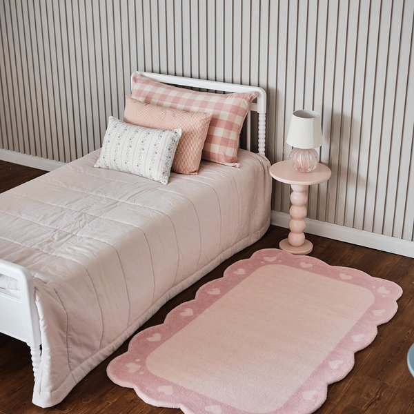 Inspirado nas formas orgânicas da natureza, o Tapete Borda Corações apresenta um formato clássico e tons de rosa delicados. Seu visual transforma qualquer ambiente infantil em um espaço acolhedor, alegre e cheio de personalidade.